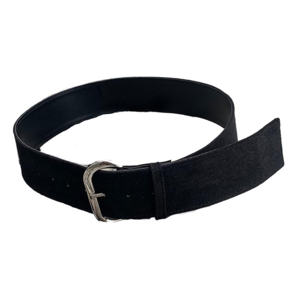 Suede Retro Leather Belt Metal Buckle Waistband Simple Women Wide Belt Girl