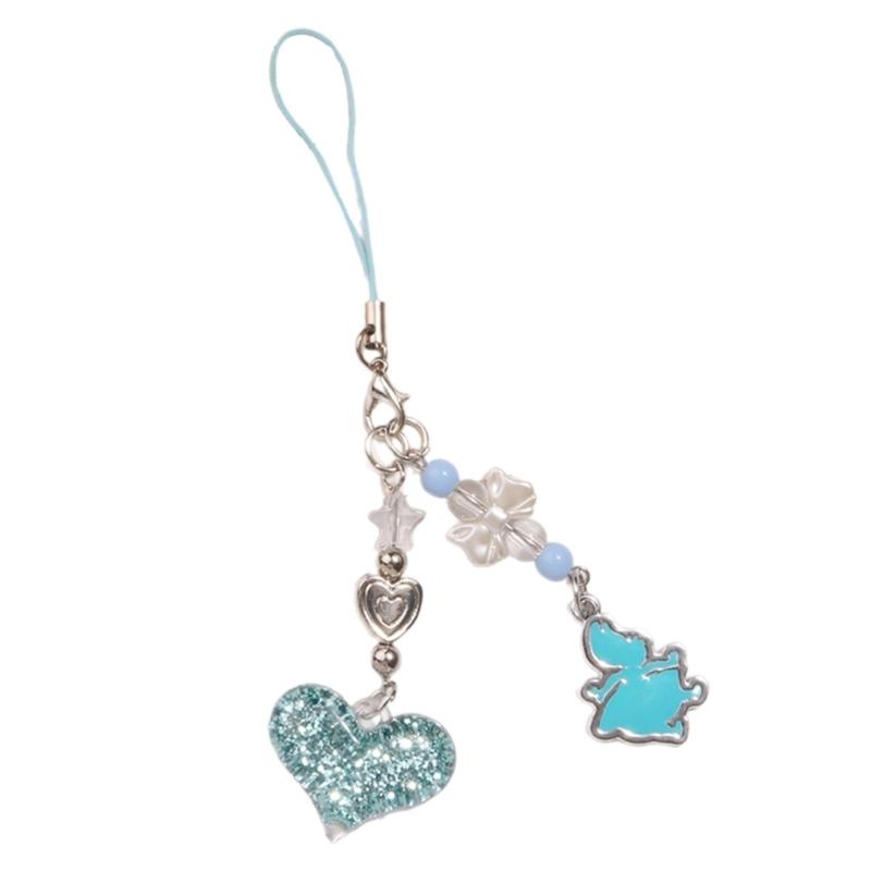 Sweet Cool Sparkling Heart Phone Charm Straps Car Keys Hanging Pendants Bag Decoration Lanyard Purse Accessories