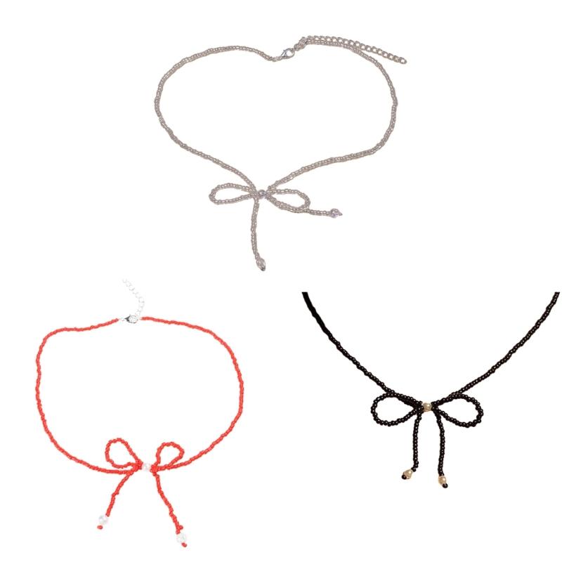 Fashionable Bowknot Pendant Necklace Handmade Colorful Beads Neckchain Bow Clavicle Chain for Women Girls Choker