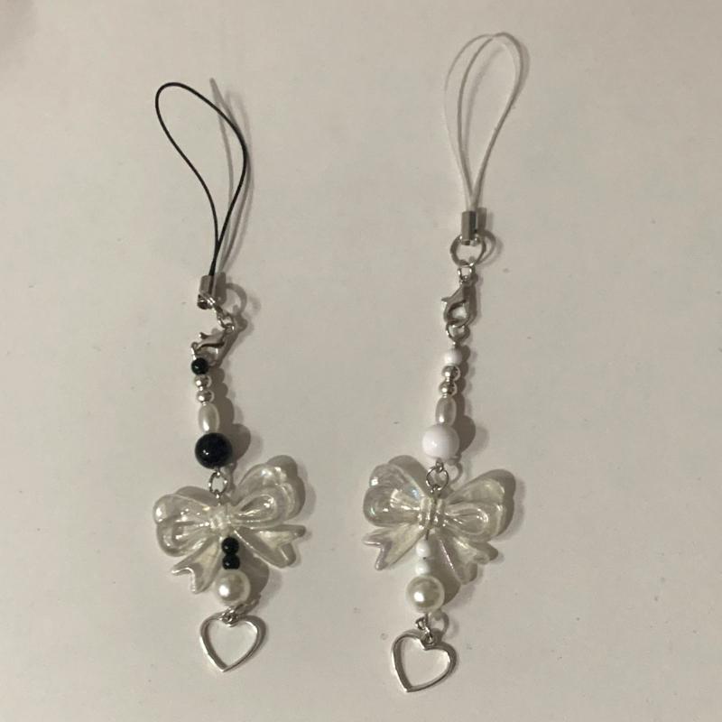 Bows Shape Phone Lanyard Bowknot Heart Pendant Wrist Strap Detachable Phone Chain Keyring Portable Accessory for Women