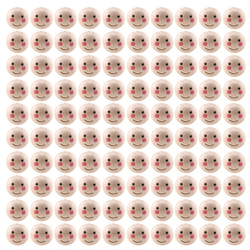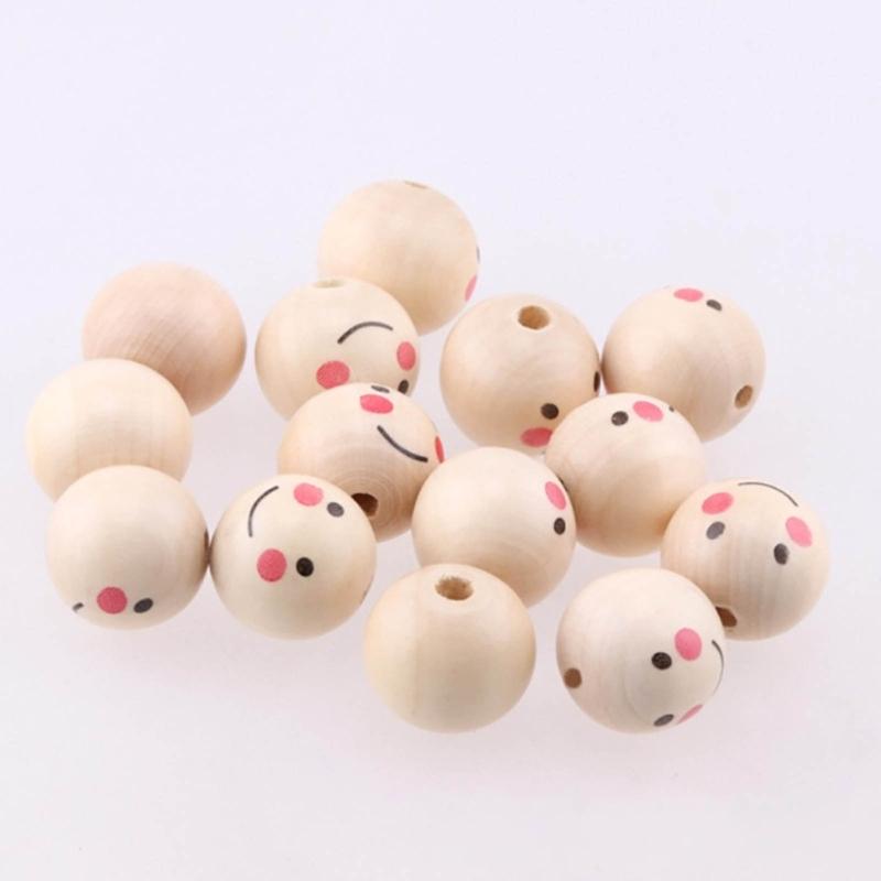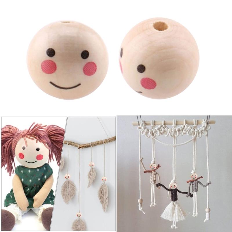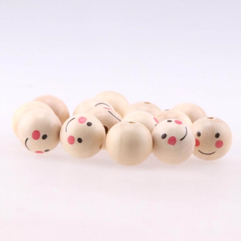 100 шт. Натуральные деревянные бусины Круглые бусины-разделители Улыбающееся лицо Голова куклы Бусина DIY Материалы для изготовления ювелирных изделий Браслет Ожерелье