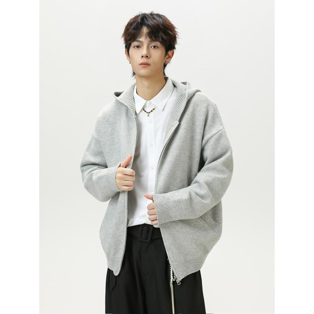 Кардиган крупной вязки с капюшоном, мужские осенне-зимние модели, мягкий, восковой, в ленивом стиле, свитер-куртка с плюшевой текстурой под оленя