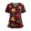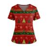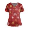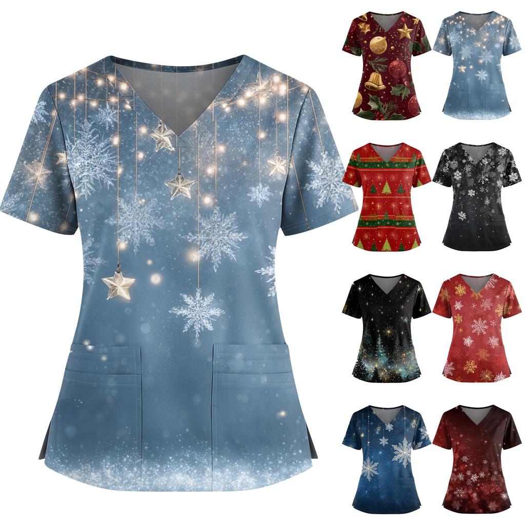 Женский рождественский топ с принтом, V-образным вырезом, двумя карманами, короткими рукавами, разрезом по подолу, униформа для сиделки