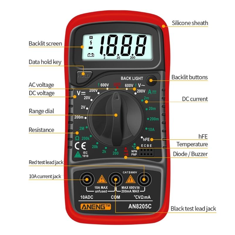 ANENG-AC/DC Амперметр Вольтметр Омметр Тестер Диодов-Аудионов Мультиметр с Термопарой Электрический Тестер 1999 Отсчетов