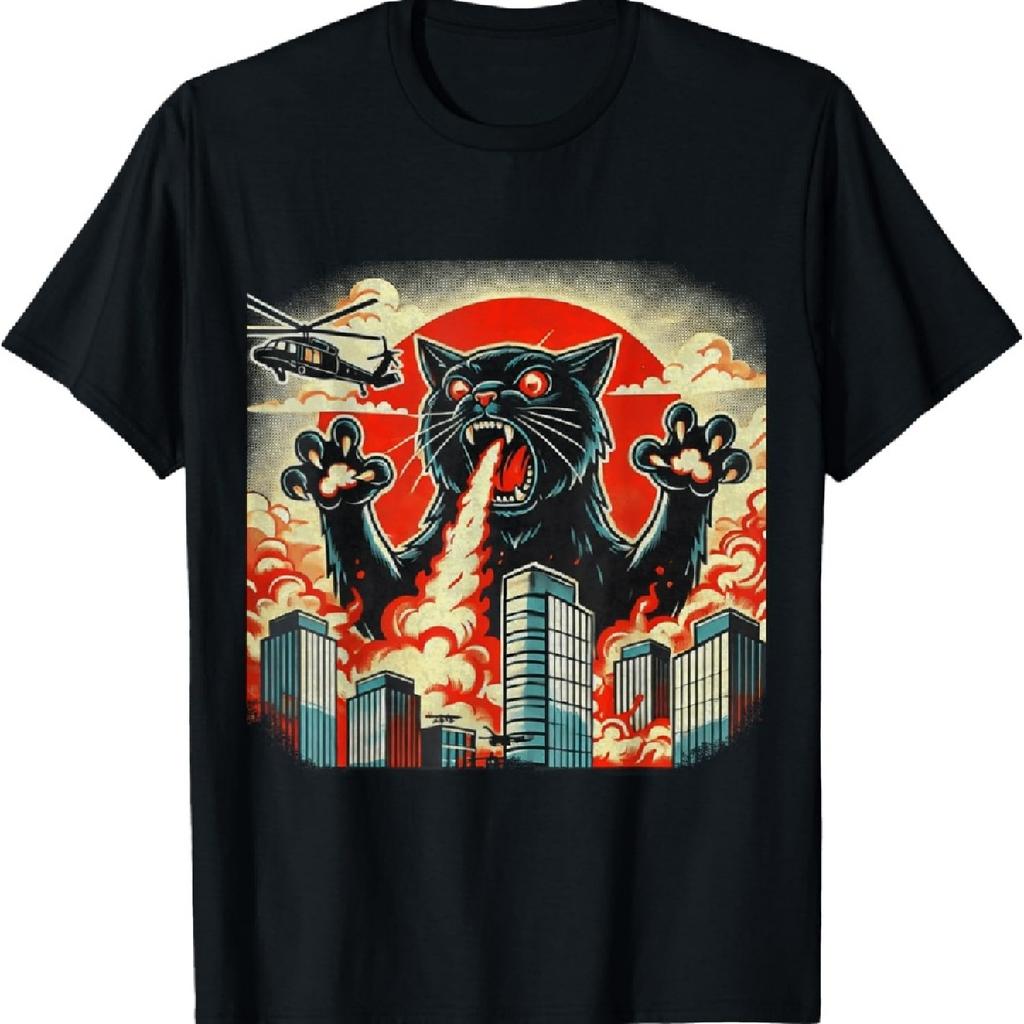 Котзилла Кот Японское Искусство Смешные Подарки с Котами Для Мужчин Женщин Детей Футболка