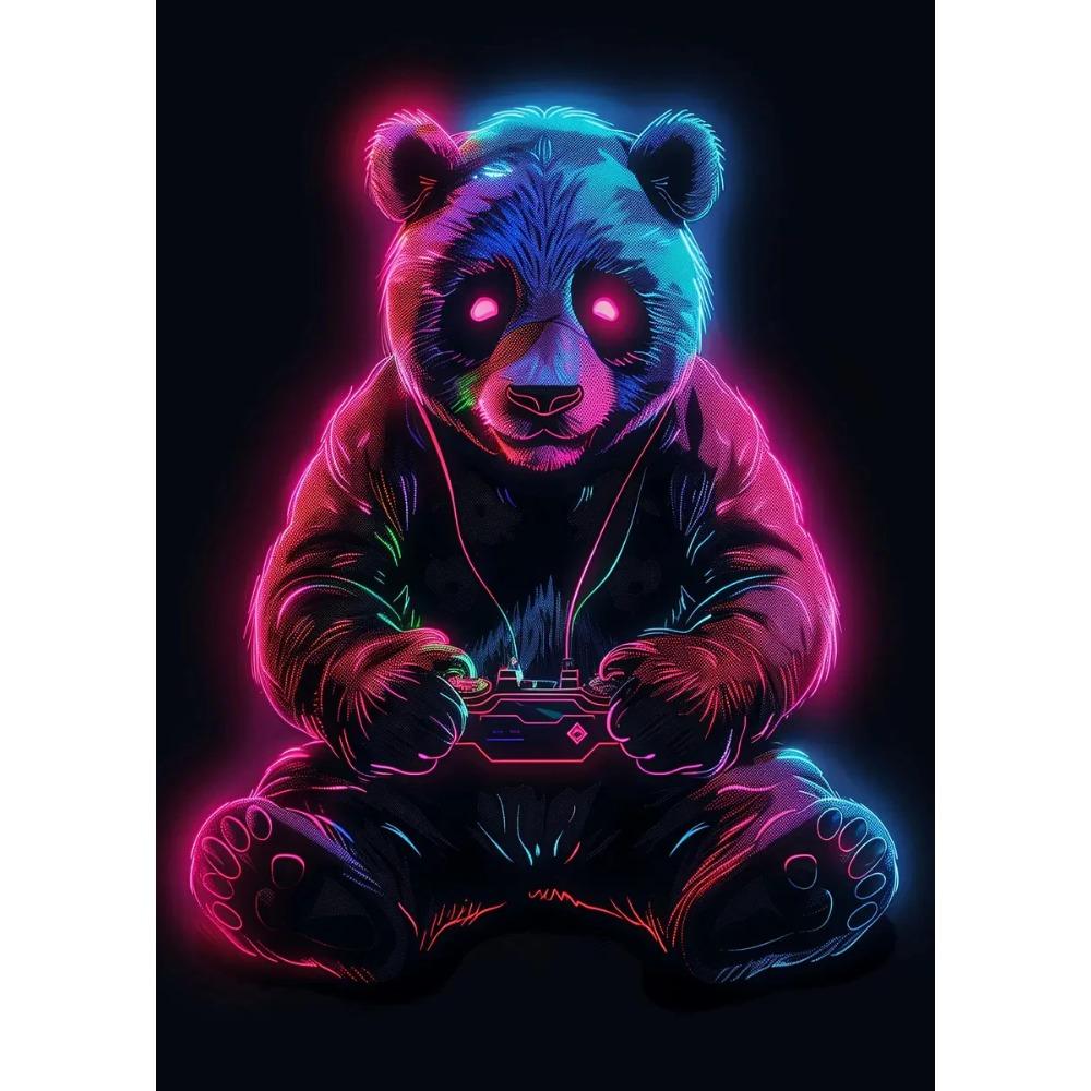 Интересные постеры игрока с животными Яркий неоновый эффект Панда Собака Геймерские принты Холст Настенные картины Домашний декор для гостиной