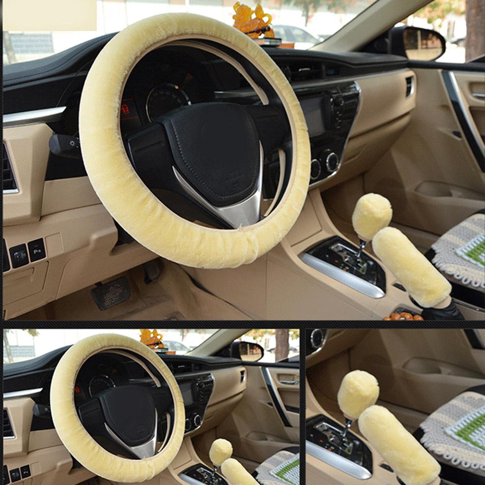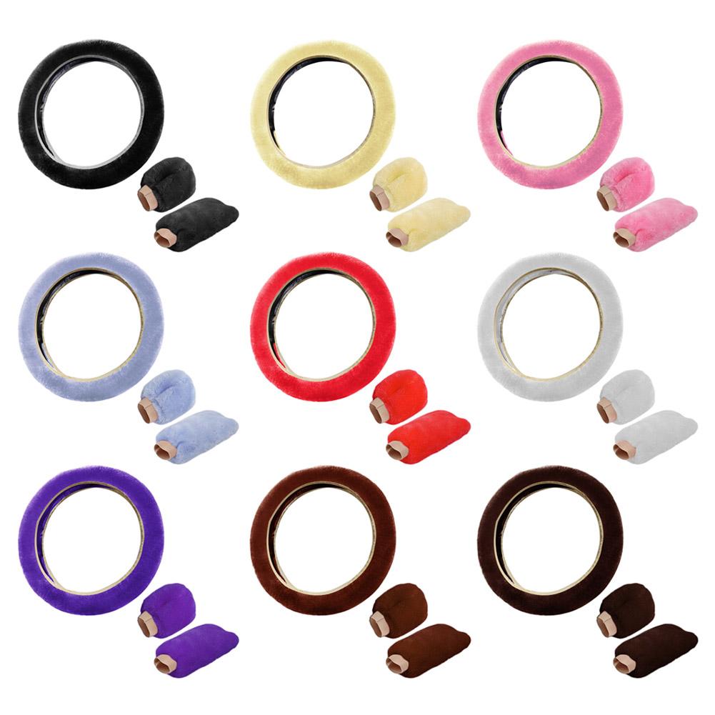 Универсальные плюшевые чехлы на руль автомобиля, защитный чехол на рычаг переключения передач, ручного тормоза, украшение, зимний чехол на рычаг переключения передач из искусственного меха
