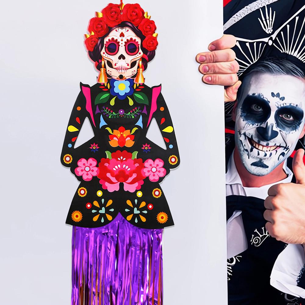 День мертвых Скелет Мужчина Кисточка Подвеска Хэллоуин Декор Подвеска на дверь Расписной Череп для Дома Двор Патио Подвесной Флаг