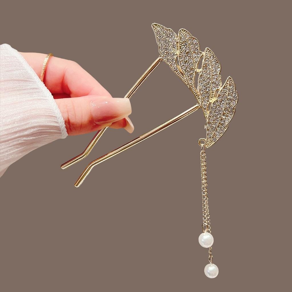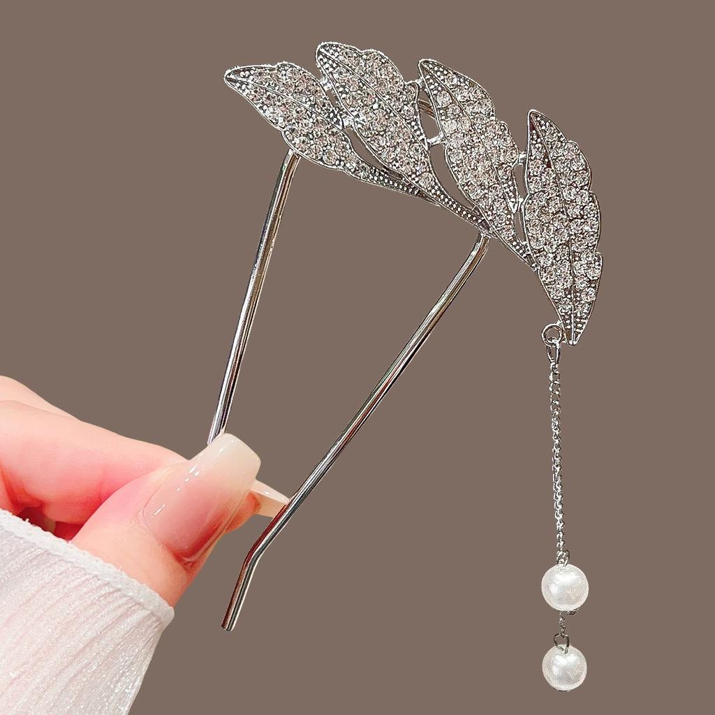 1 шт. Полные Алмазов Листья Жемчуг Кисточки Заколки Элегантные Аксессуары для Волос Легкая Роскошь Банкетные Аксессуары Привлекательные