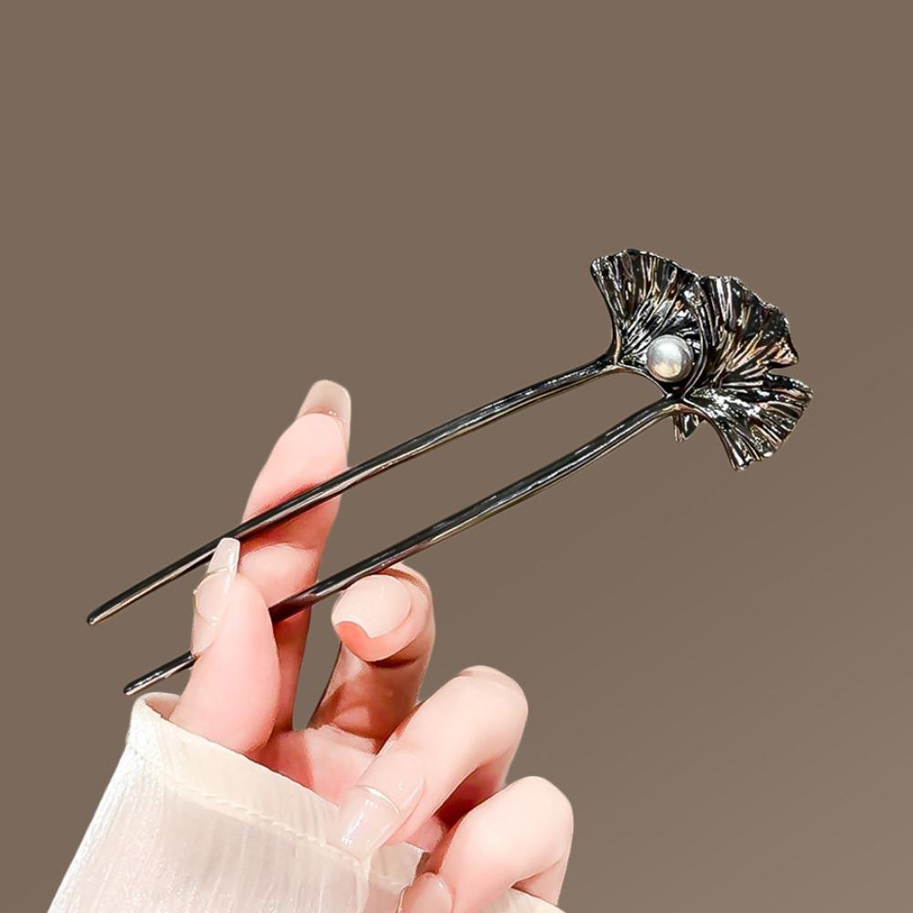 1 шт. Изысканные Модные Винтажные Металлические Палочки для Волос в Виде Листьев Гинкго для Женщин Элегантная U-образная Жемчужная Заколка Головной Убор Аксессуары для Волос