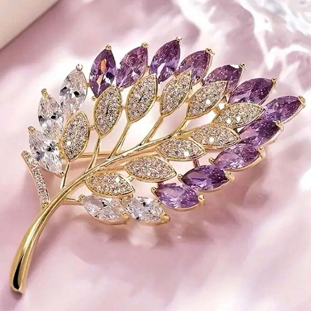 1 шт. Женская элегантная романтическая брошь Фиолетовая брошь в виде цветка с листьями из сплава и кристалла, аксессуар для вечеринки, на день рождения