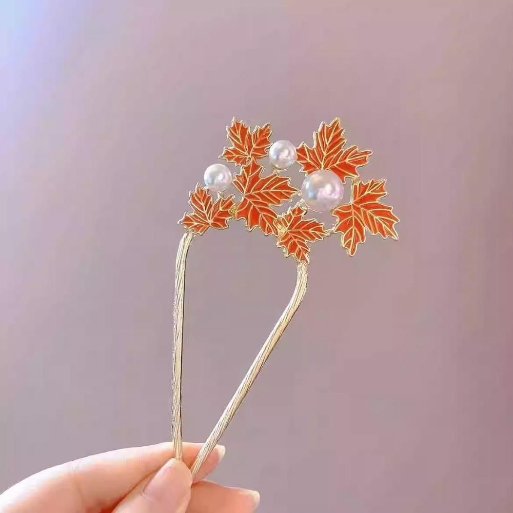 1 шт. Изысканная заколка-шпилька в стиле династии Мода с жемчугом и кленовым листом, Современная китайская металлическая заколка для волос, Нежные наследственные украшения для волос