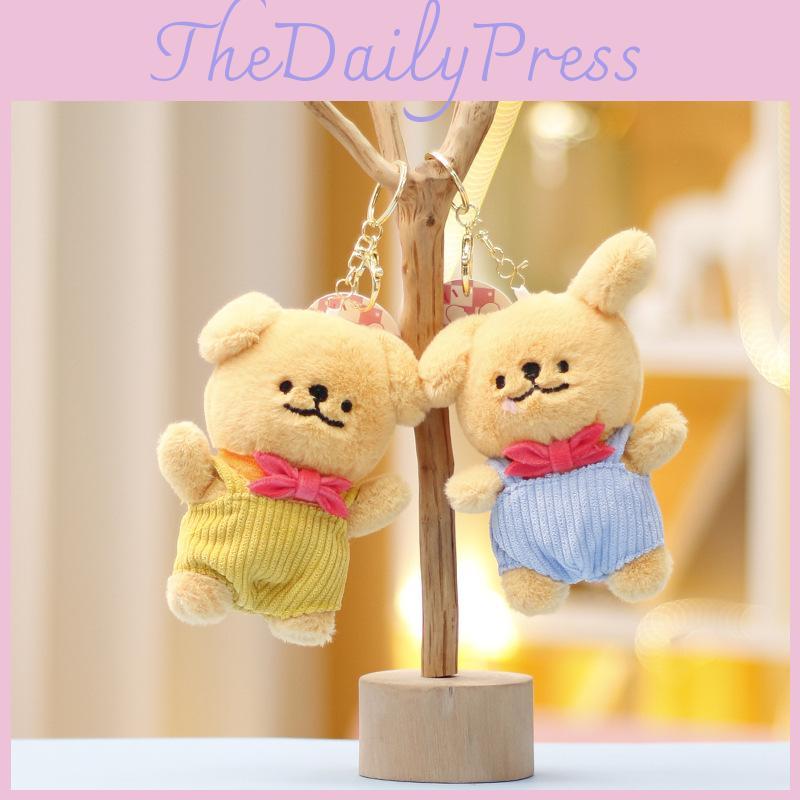Милый плюшевый брелок для сумки в виде собаки, красочный линейный дизайн, супермягкий короткий плюш, идеальная идея для подарка