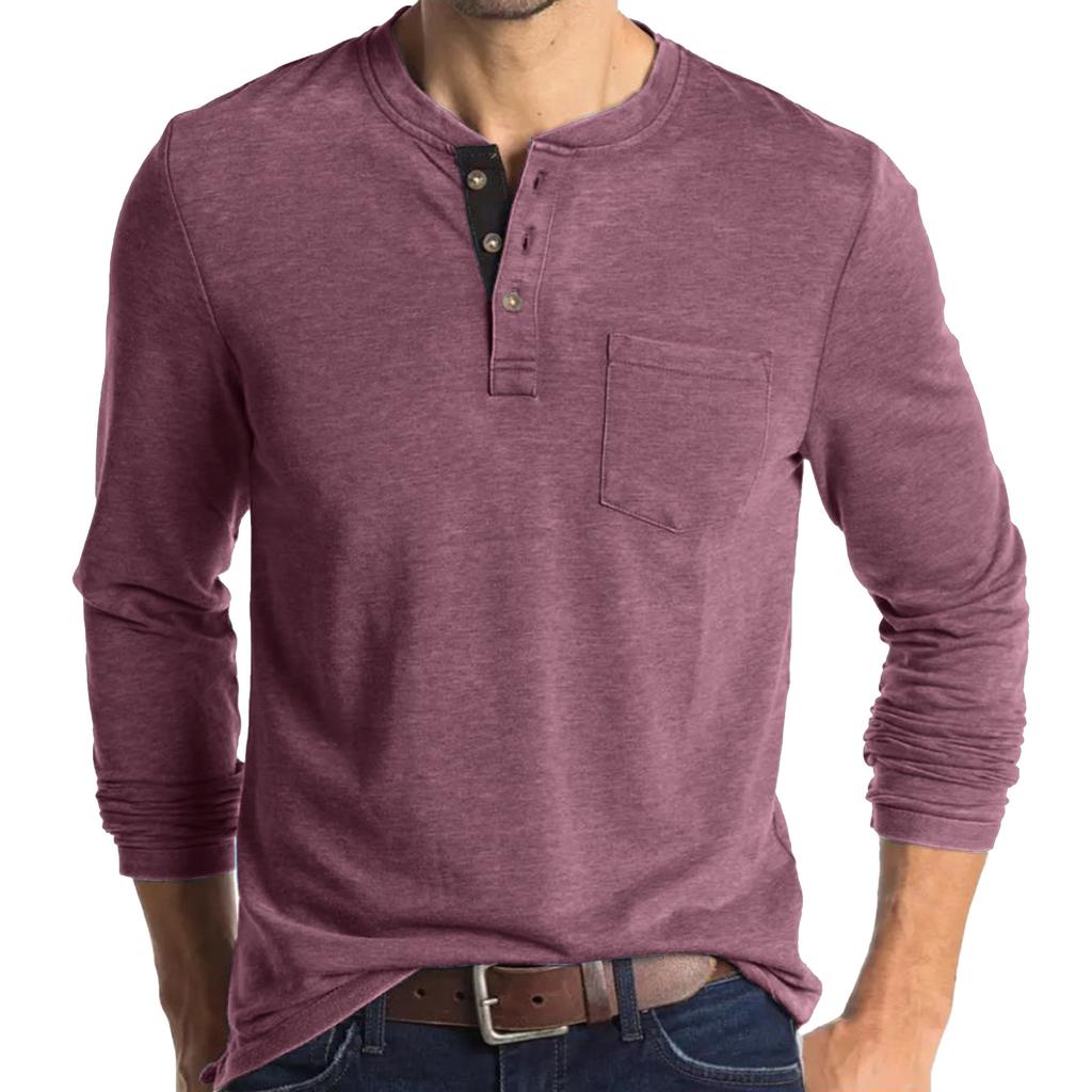 Мужская футболка с длинным рукавом и круглым вырезом, мужская базовая футболка хенли, повседневный топ