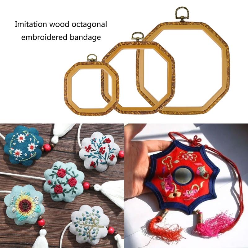Имитация дерева восьмиугольная пластиковая рамка для вышивания, подходит для ткани для вышивания разного размера и формы, достаточно, чтобы удовлетворить ваши различные потребности в изготовлении поделок.
