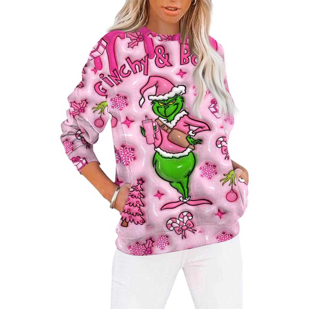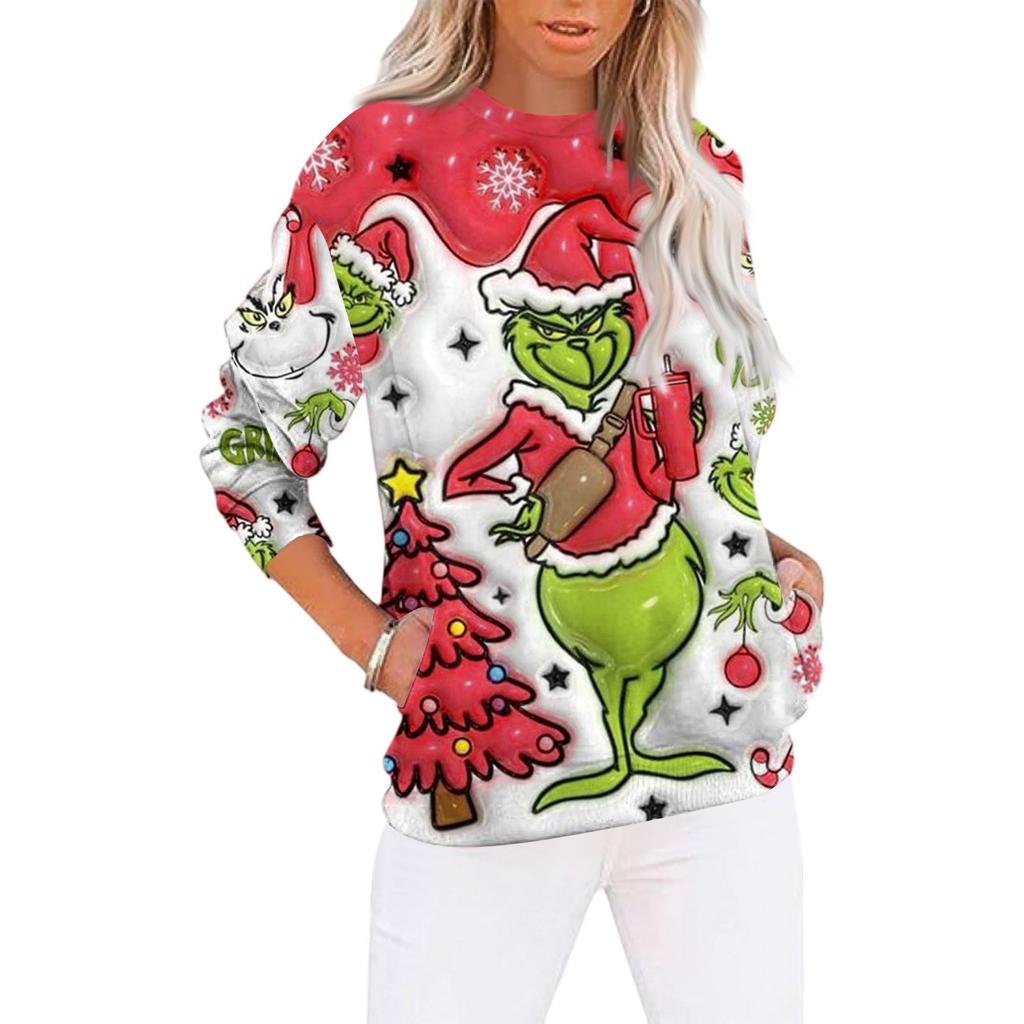 Рождественские толстовки для женщин свитер милая рубашка осенний пуловер топ