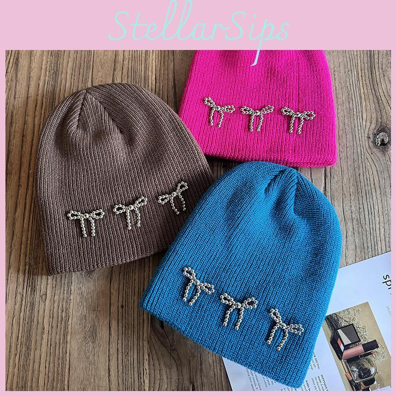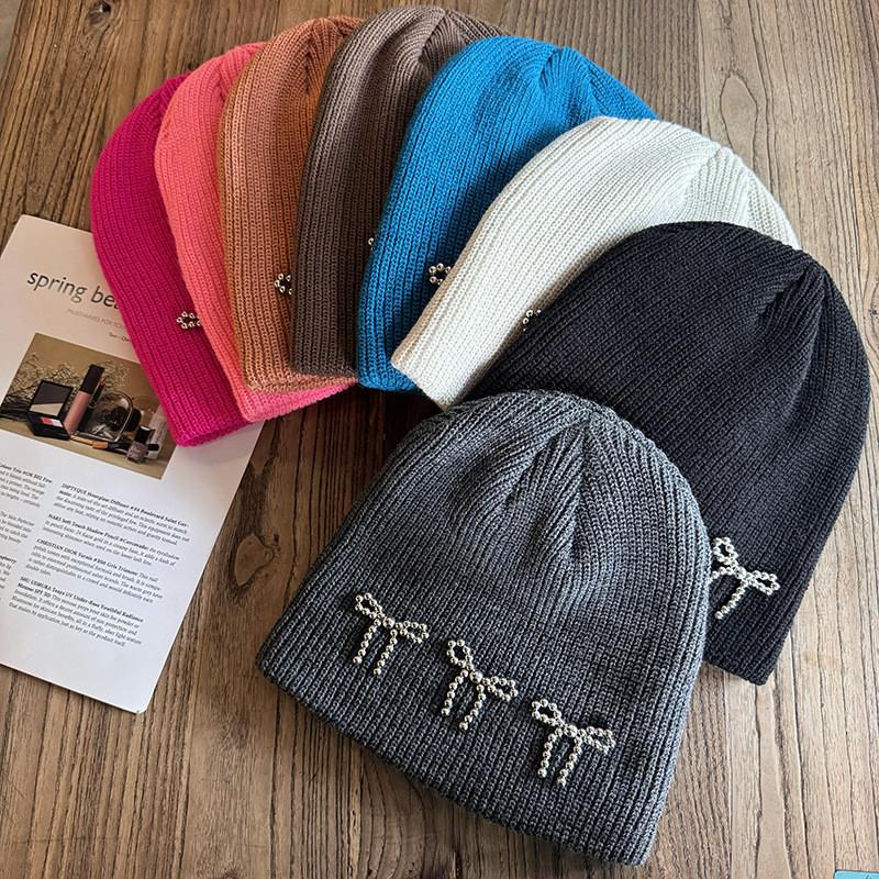 Вязаная шапка для женщин, теплая, с дизайном с бантом, для осенне-зимней моды