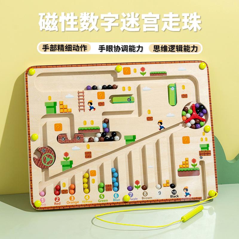 Children'S Wooden Magnetic Counting Operation Color Classification Magnetic Pen Ball Shift Game Puzzle Early Education Toy