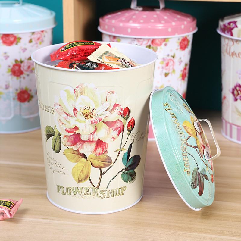 Элегантная жестяная коробка-органайзер с крышкой, с дизайном розы, для дома, офиса и спальни
