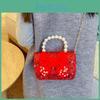 Милая детская новогодняя сумка Стильная жемчужная модная сумка-кроссбоди на цепочке для девочек-малышек