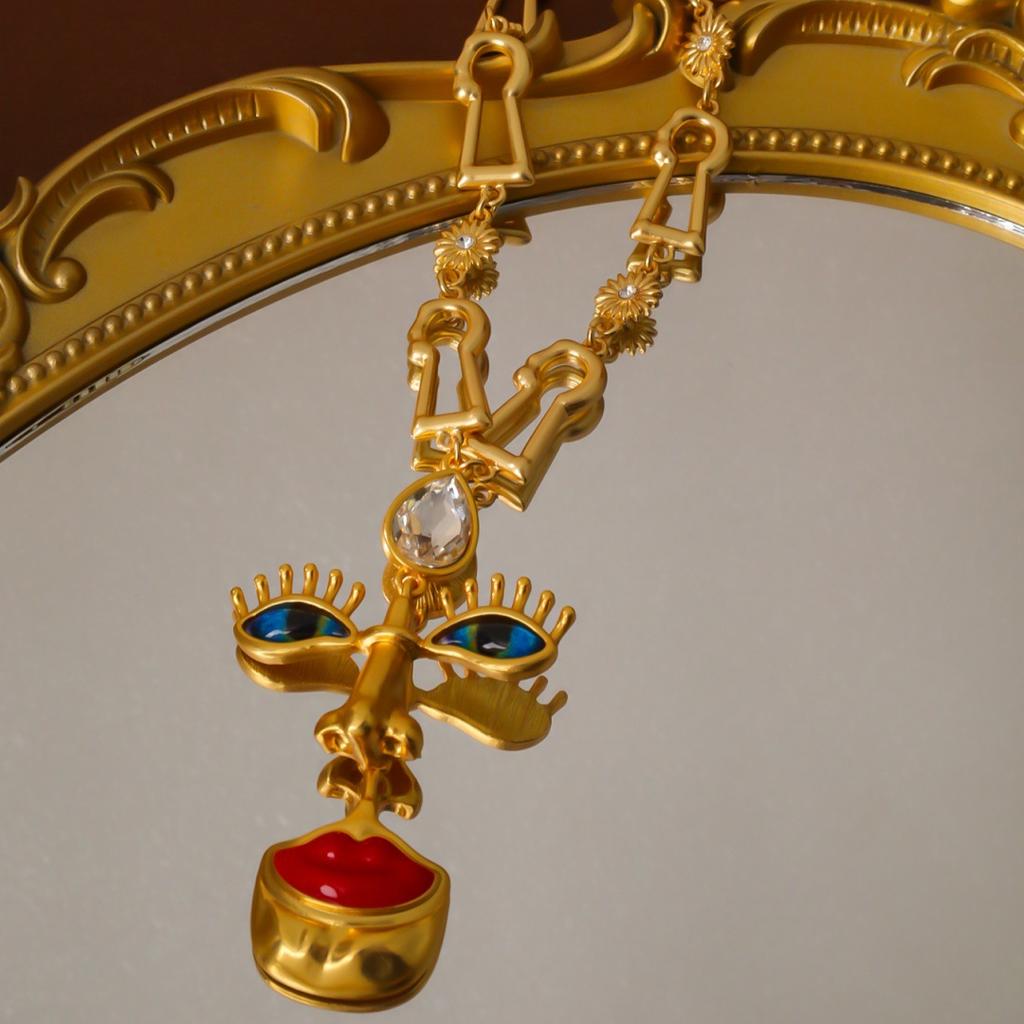 Эти серьги и ожерелья из сплава выполнены в античном стиле и украшены красными губами, носом и глазами, что делает их идеальными для вечеринок, праздников и других мероприятий.