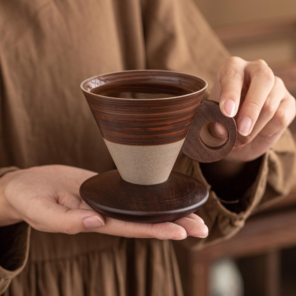 Высокоценный ретро набор кофейных чашек креативная керамическая нишевая чашка для латте латте-марк грубая керамика конусная чайная чашка