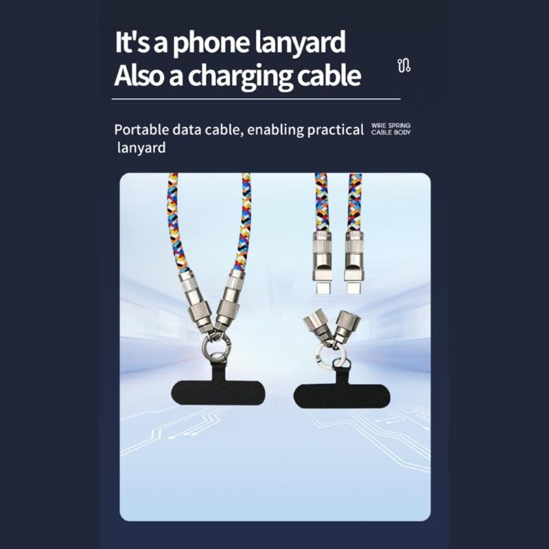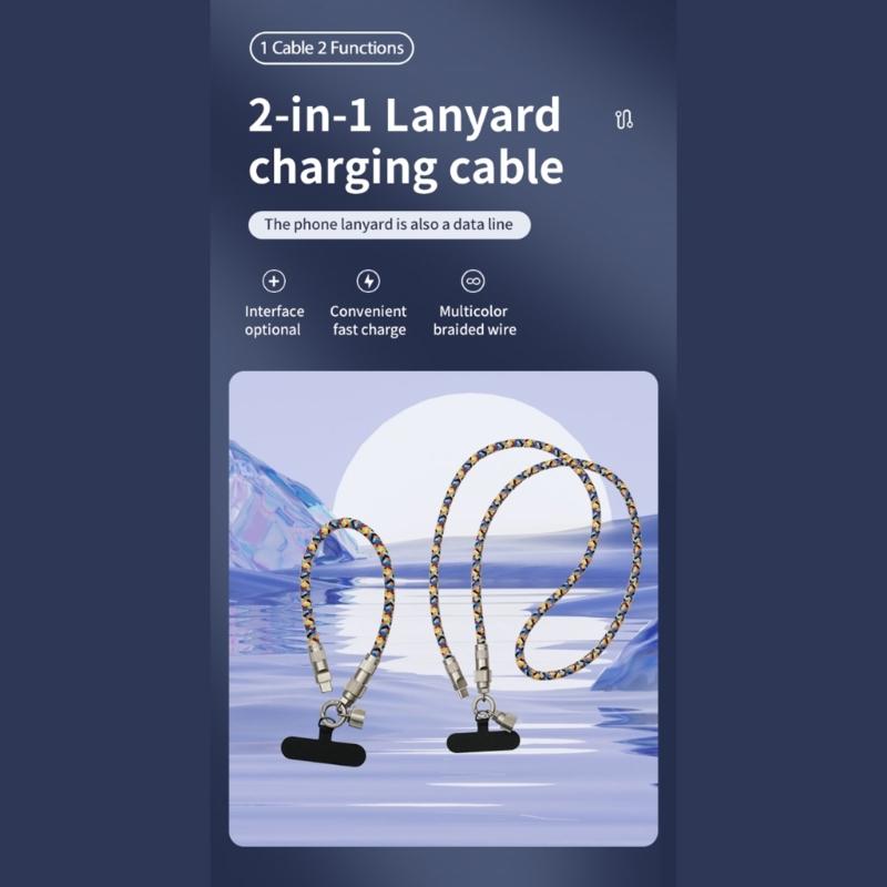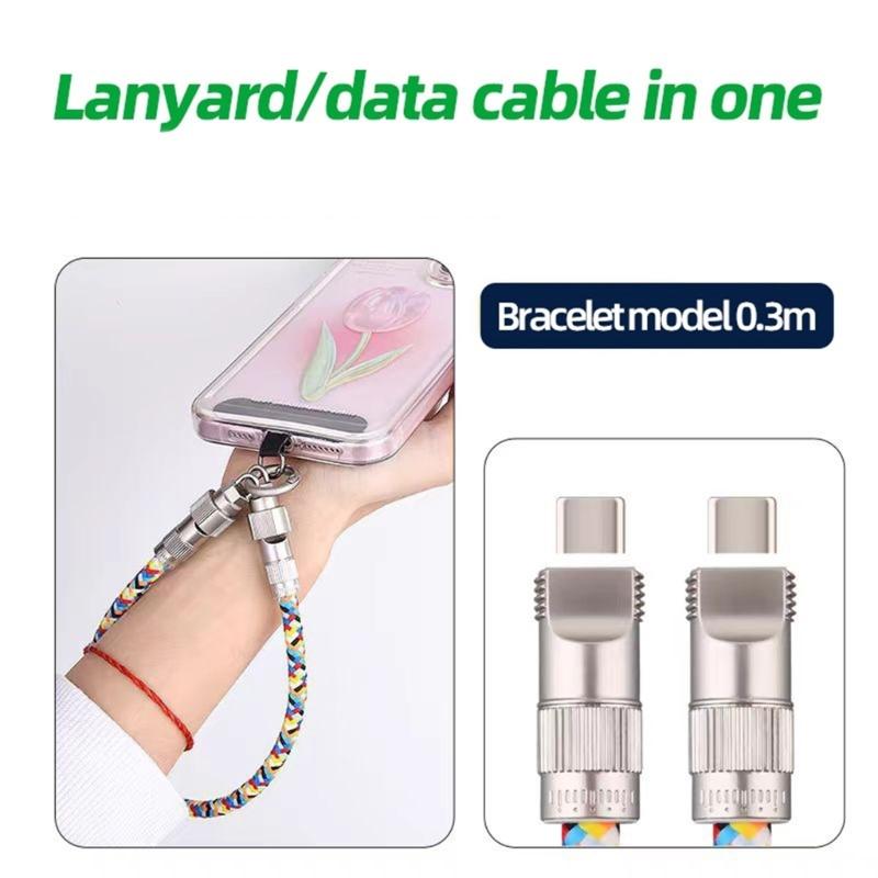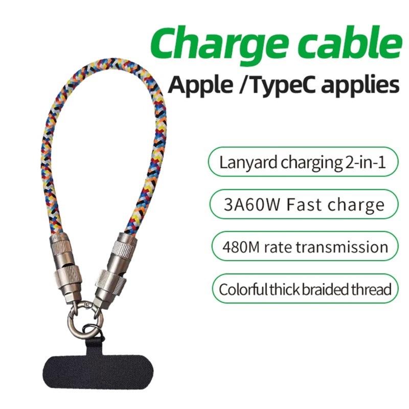 Модный ремешок-шнурок для телефона 2 в 1, кабель для передачи данных, зарядный шнур PD60W Type C 1,2 м, тип через плечо/30 см тип на запястье