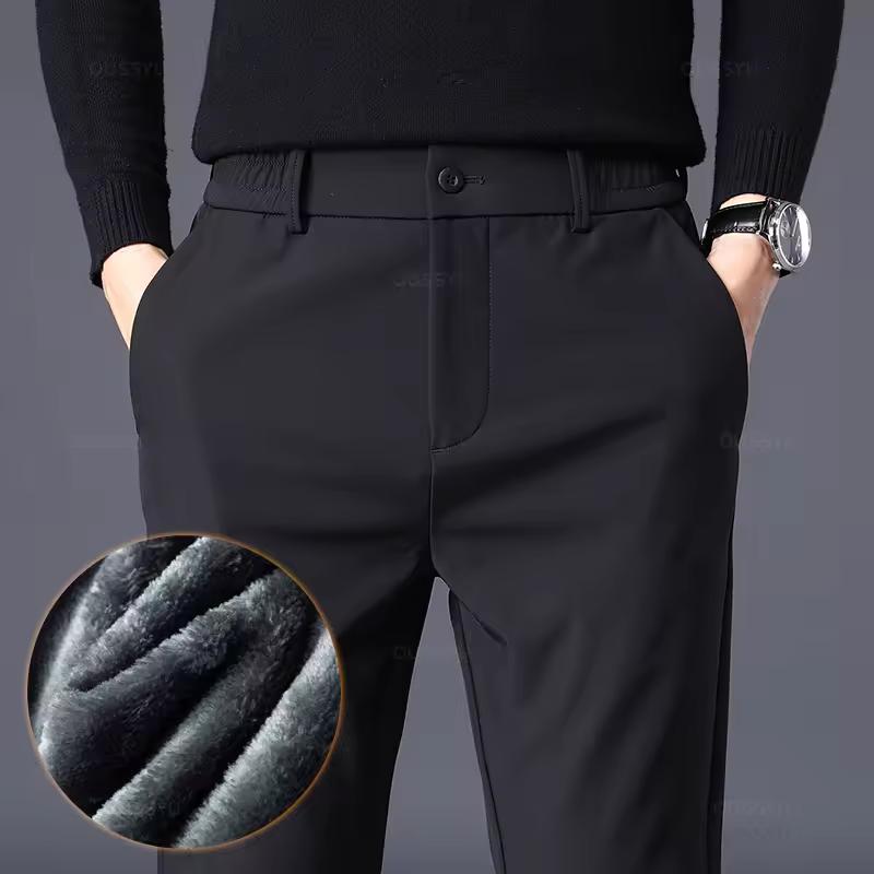 Осень Зима Теплые Мужские Флисовые Брюки Толстые Деловые Эластичные Прилегающие Эластичный Пояс Джоггеры Классические Брюки Мужские