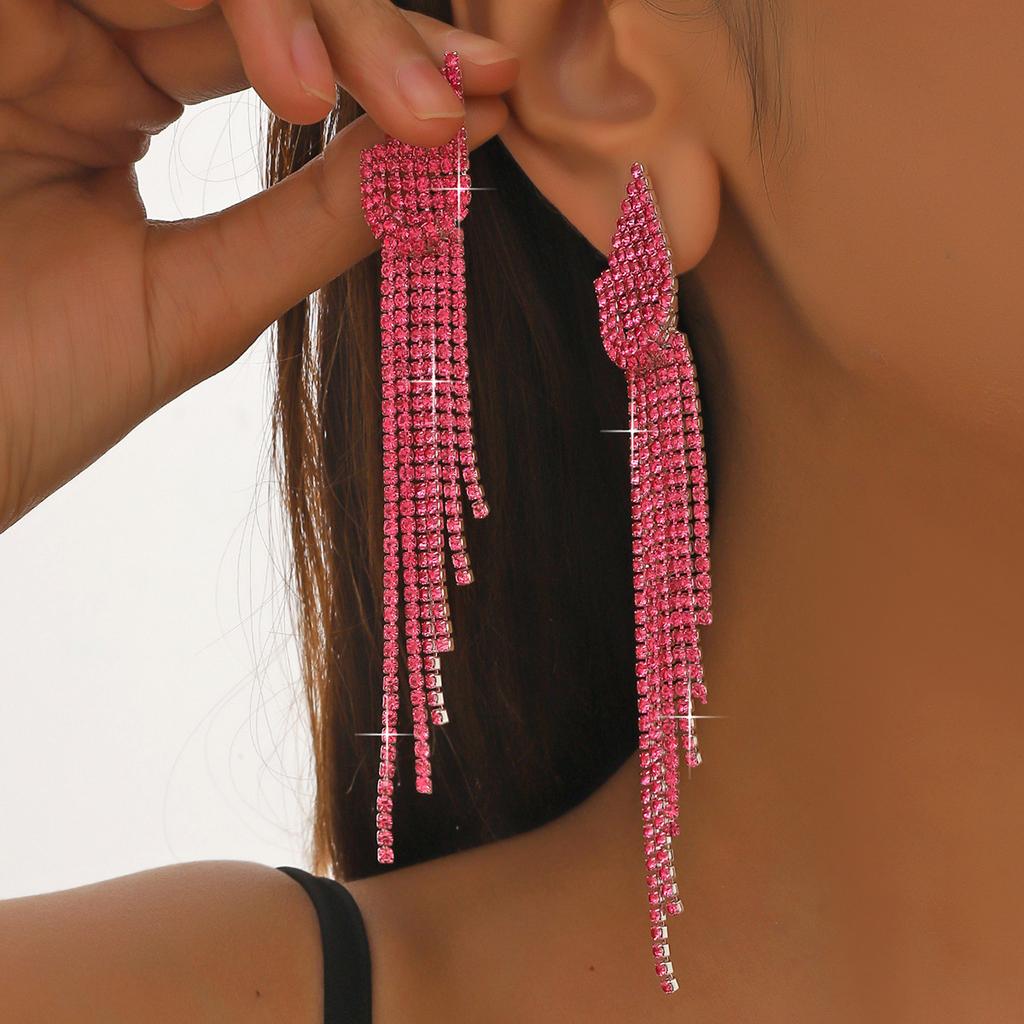 Темпераментные Роскошные Супер Блестящие Стразы Длинные Серьги с Бахромой
