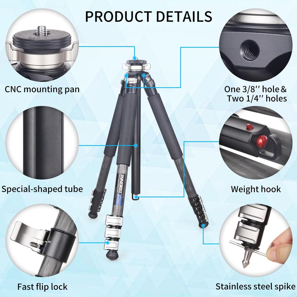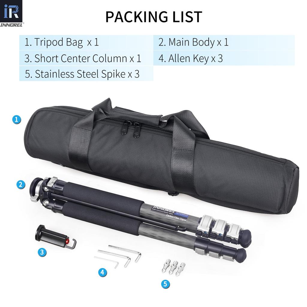 INNOREL GT254CF Carbon Fiber Tripod with Quick Lever Irregular Center 15kg Maximum Load Working Pipe Panoramic Macro Center and Bag Included Lock,