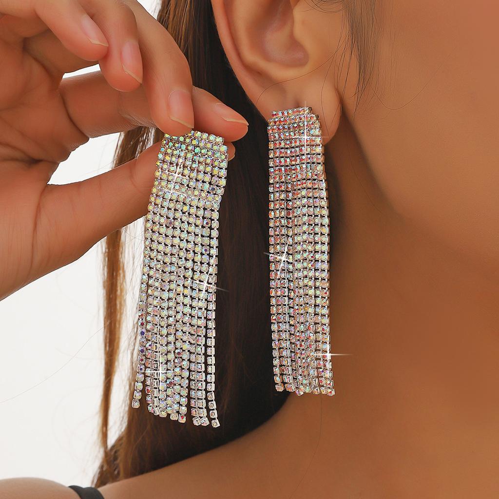 Темпераментные Роскошные Супер Блестящие Стразы Длинные Серьги с Бахромой