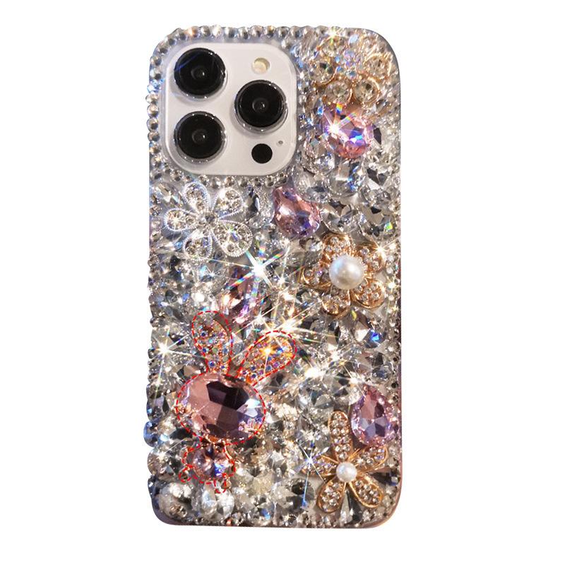 Для Apple 17 Чехол Роскошный для IPhone 15 Стразы 13 Жемчуг 14 Кролик Цветок Легкая Роскошь Женский Instagram