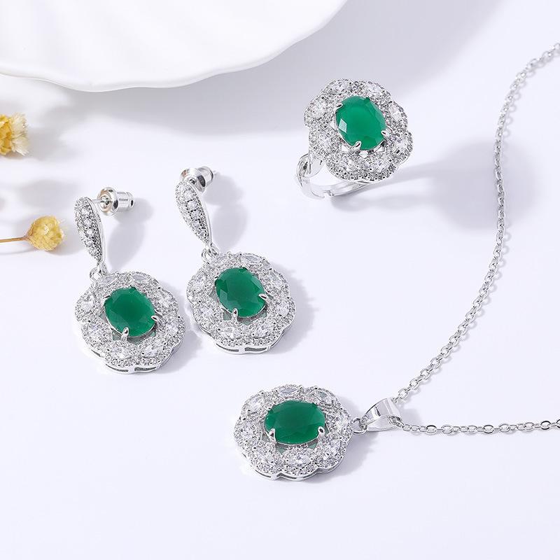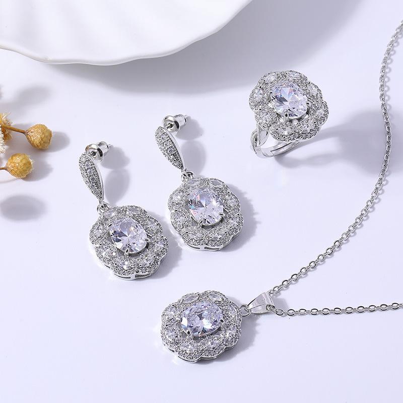 2025 Циркониевый Набор Ювелирных Изделий Свадебный Свадебный Набор из 3 Предметов Ожерелье Серьги Кольцо Полный Бриллиант Мода Свадебное Украшение