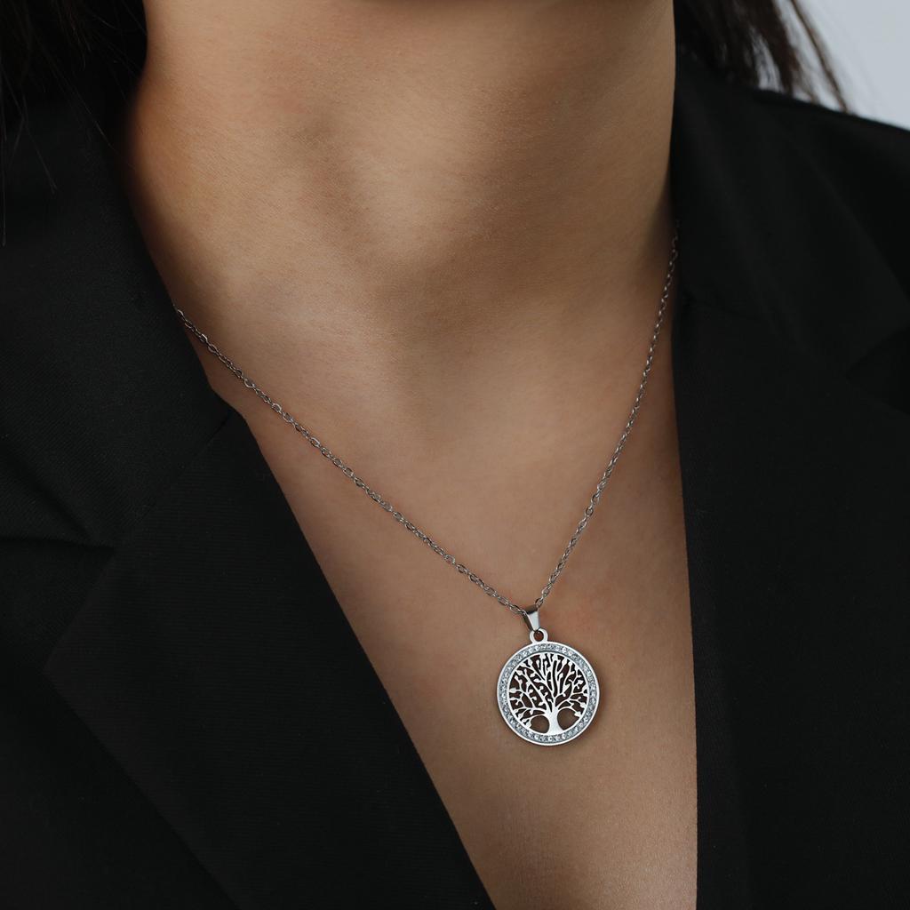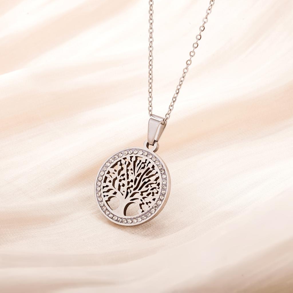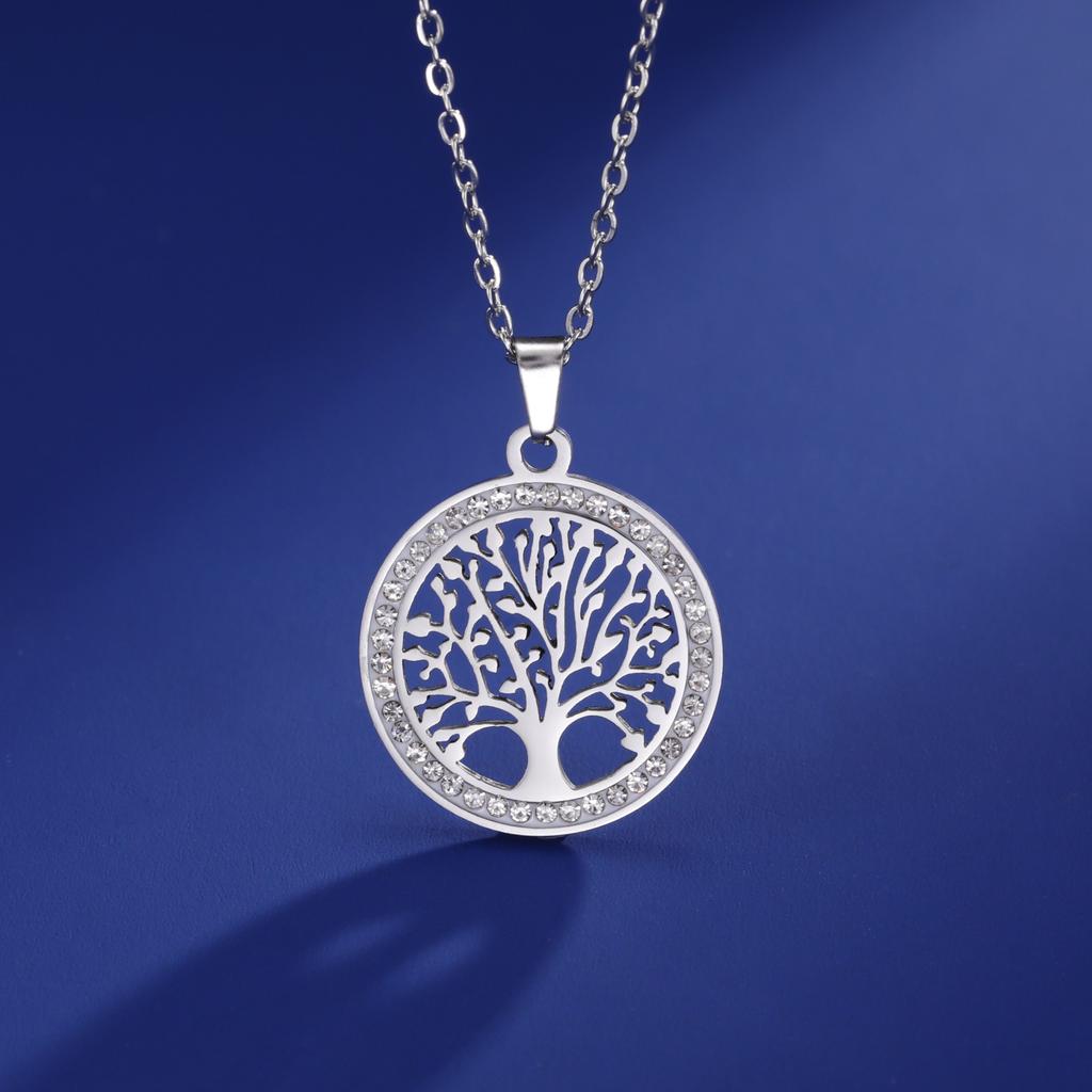 Женское ожерелье из нержавеющей стали золотистого цвета с круглым кулоном в виде Дерева жизни с прозрачным цирконом, роскошное ювелирное изделие, подарок на свадьбу