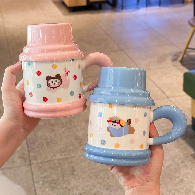 Милая и ценная кружка для щенка с крышкой и ложкой, мультяшная керамическая чашка с котенком для подарка на день рождения одноклассницам