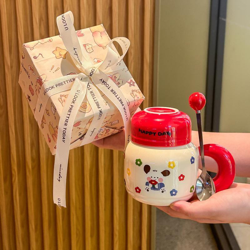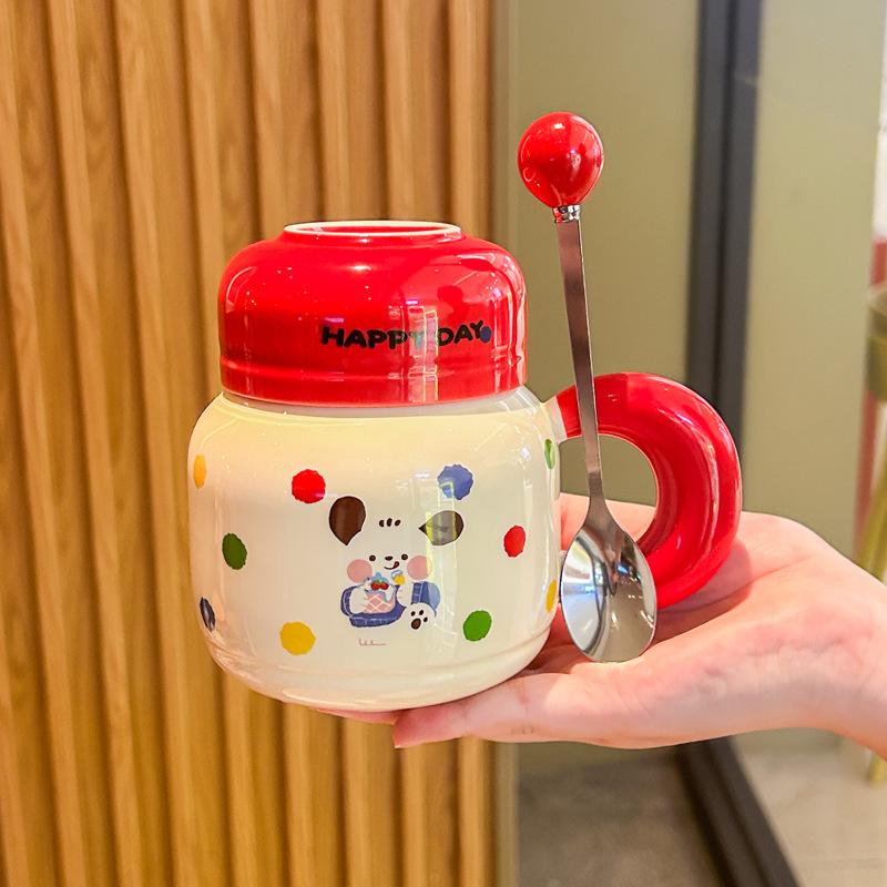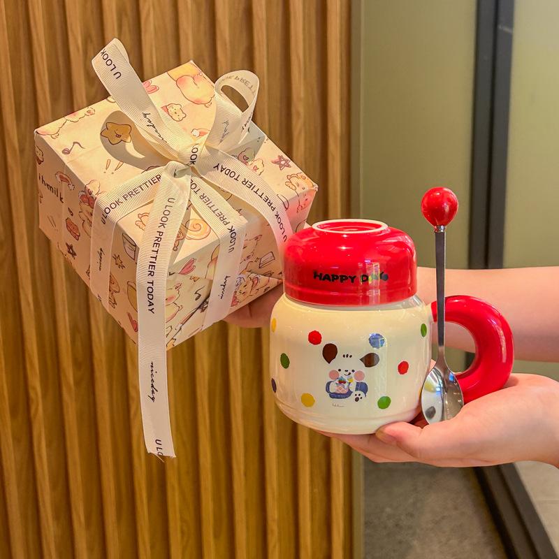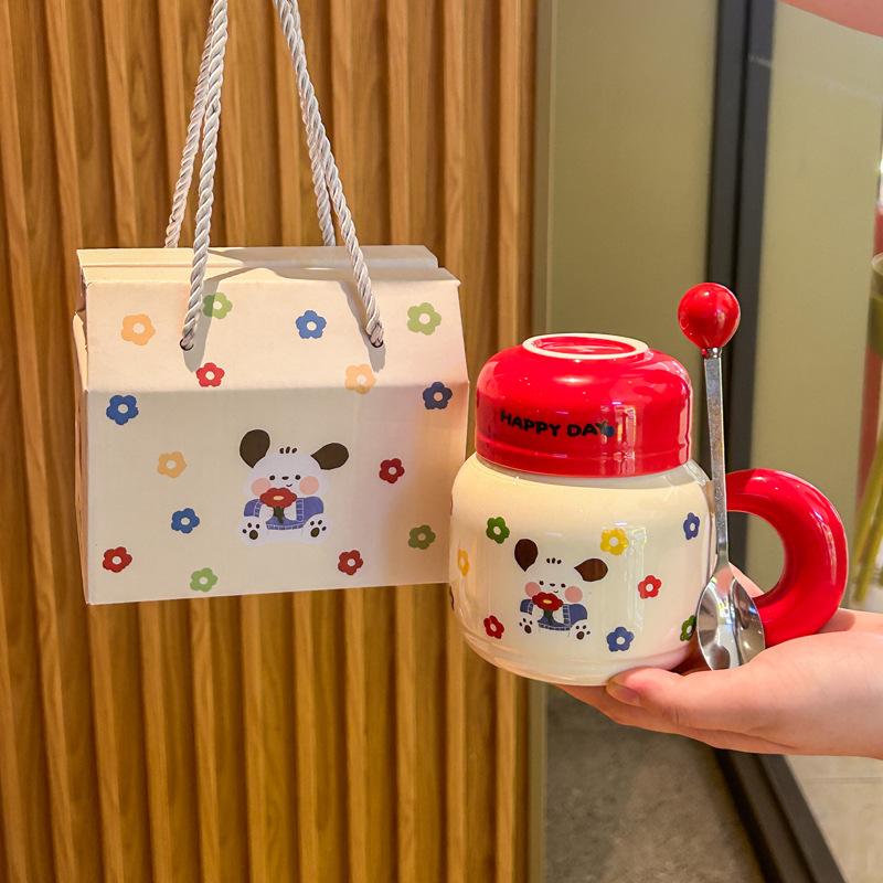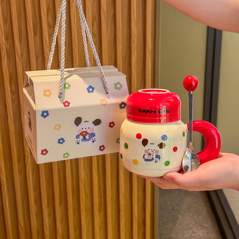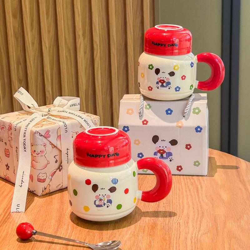 Кружка для щенка с крышкой и ложкой, милая керамическая чашка для девочки, чайник большой емкости, бытовая кофейная чашка