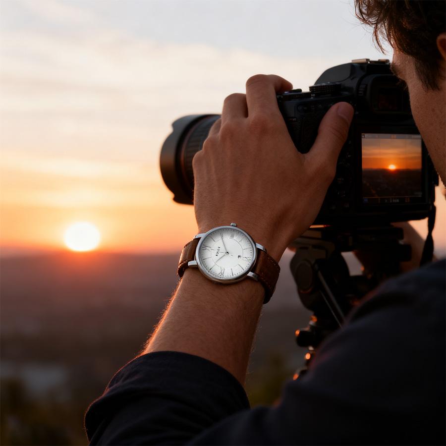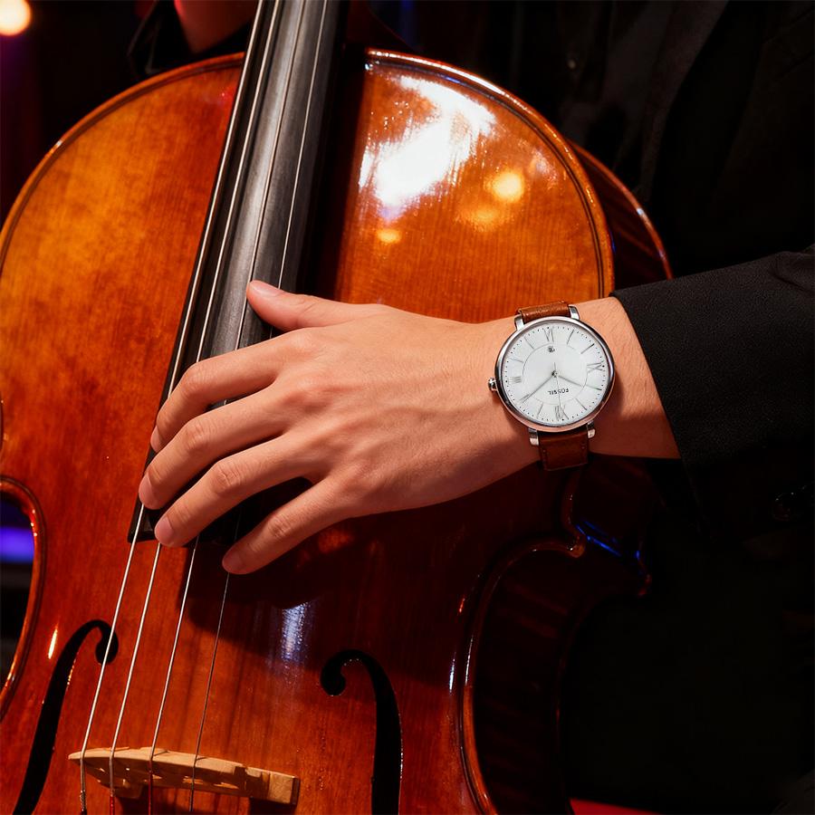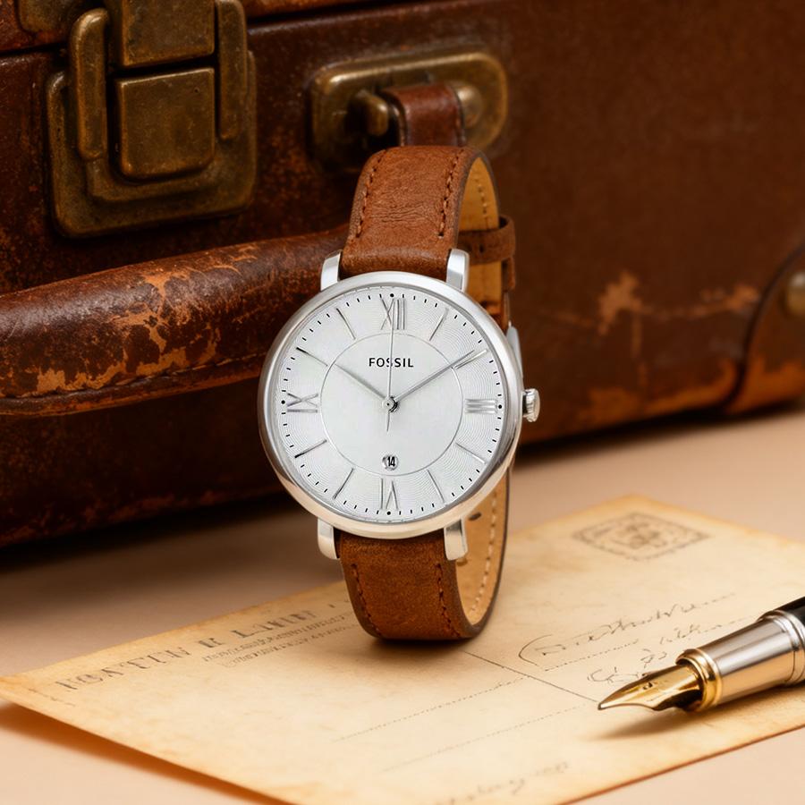 Fossil Женские часы Jacqueline с белым циферблатом и коричневым кожаным ремешком - ES3708