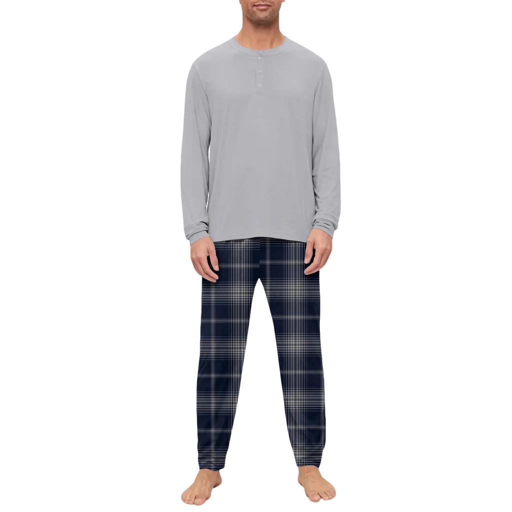 Мужской пижамный комплект, с длинным рукавом и длинными брюками, двухпредметный комплект