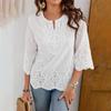 Женская модная и сексуальная блузка-пуловер с V-образным вырезом и рукавами три четверти, отделанная кружевом