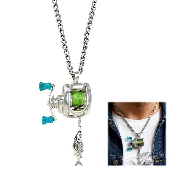 Realistic Mini Fishing Reel Design: Crafted from durable alloy, this necklace features a faithful replica of a fishing reel, including a textured green line reel, detailed handle, and precise frame. Every element is meticulously designed to capture the authentic look and feel of a real fishing reel, making it a perfect tribute to your passion for fishing.