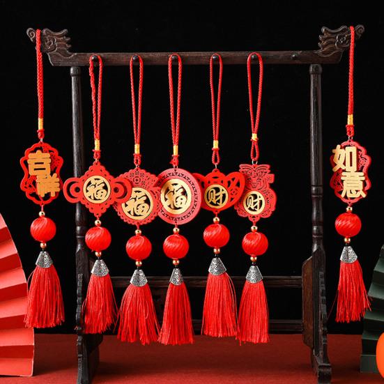 Отпразднуйте традицию и элегантность с этим кулоном на китайский Новый год, универсальным декоративным элементом, идеально подходящим для прихожих, гостиных или офисов.. Каждое украшение, изготовленное из высококачественной натуральной древесины, отличается тщательно проработанными кисточками, которые добавляют праздничный штрих и обеспечивают долговечность для длительного использования..