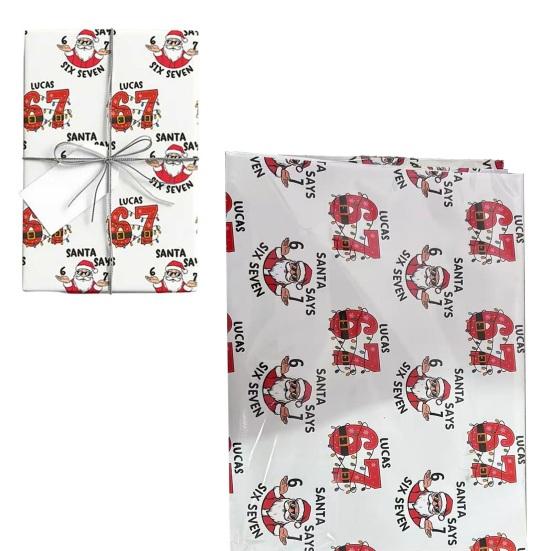 Юмористичный рождественский дизайн с мемом 67: Эта упаковочная бумага с игривым мемом про Санту 67 в сочетании с яркими праздничными узорами привносит юмор и индивидуальность в оформление ваших подарков.. Привлекательный дизайн вызывает радость и смех как у друзей, так и у коллег, превращая обычные подарки в запоминающиеся поводы для разговора.. Его уникальное праздничное оформление привносит беззаботный поворот в традиционный праздничный декор.