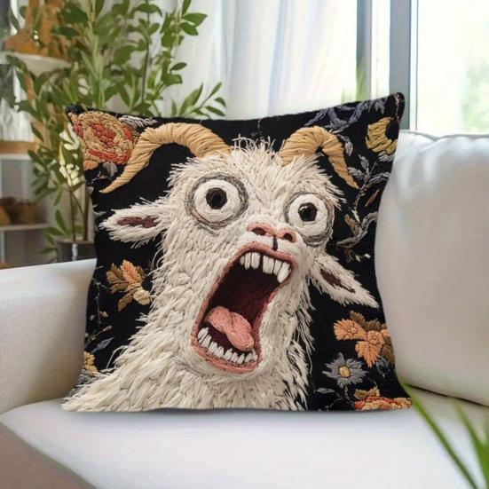 Декорированная детальной 2D плоской печатью и имитацией вышивки очаровательного узора с кричащим козлом, она добавляет уникальный декоративный штрих вашему дивану или спальне.. Идеально подходящий для дополнения любого стиля домашнего декора, этот универсальный наволочка создает теплую, уютную атмосферу в гостиных, спальнях, патио или на диванах.. Легко преобразите ваше пространство с помощью этого многофункционального и стильного домашнего аксессуара.