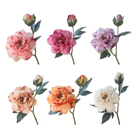 Реалистичный дизайн с двойным цветением: Каждый стебель украшен одним полностью распустившимся пионом и одним нежным бутоном, тщательно разработанным для имитации естественных стадий роста.. Эта композиция из двух цветков добавляет глубину и аутентичность, усиливая визуальную привлекательность как при использовании в помещении, так и на открытом воздухе.