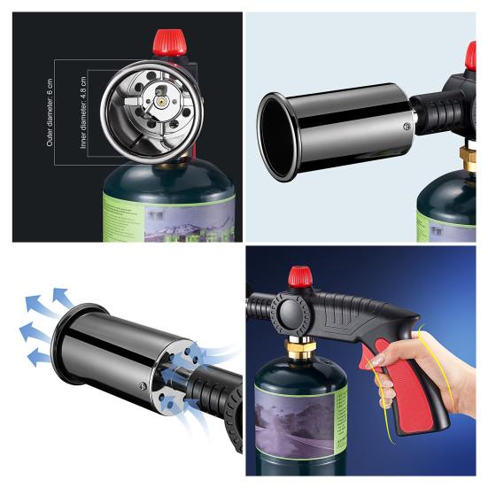 Мгновенный поджиг одним касанием: Одним нажатием кнопки горелка мгновенно воспламеняется и за секунды достигает пиковой температуры, что делает ее идеальным инструментом для приготовления на гриле на открытом воздухе, барбекю и розжига угля, а также экономит ценное время при выполнении таких задач, как пайка, удаление сорняков и другие высокотемпературные применения.