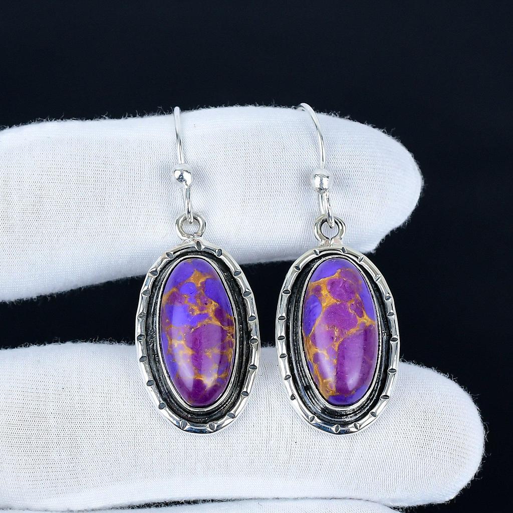 Пурпурный Медный Бирюзовый Драгоценный камень Ручной работы Серьга из стерлингового серебра 925 пробы