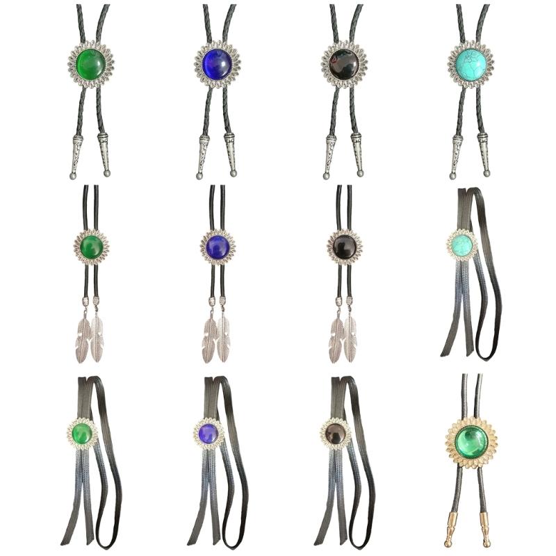 Гравировка Цветок Камень Боло Галстук Резной Галстук для Рубашки Джинсов Западное Ожерелье Плетеный Шнурок Галстук Боло