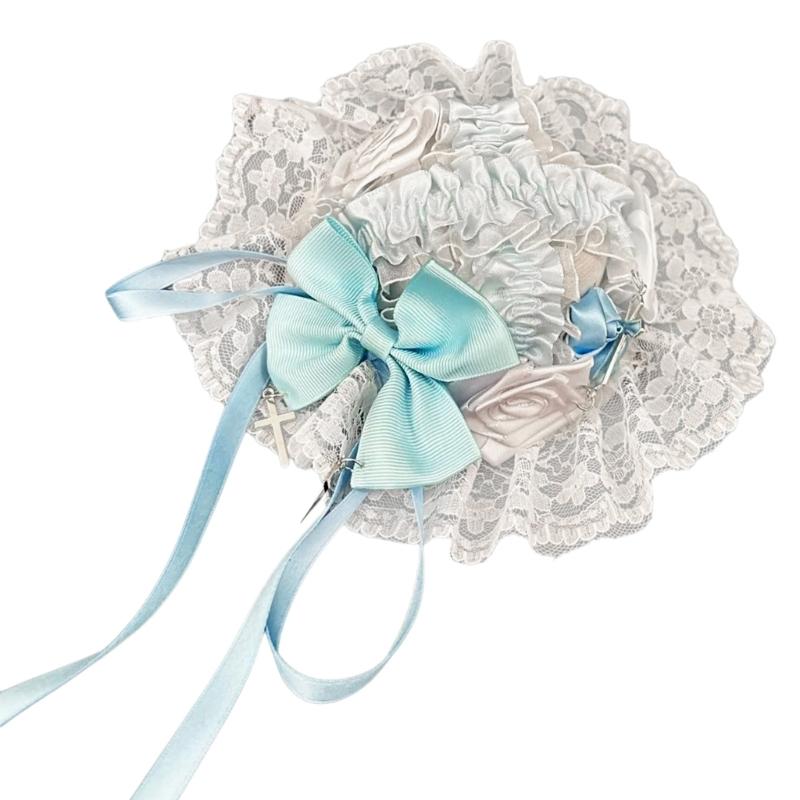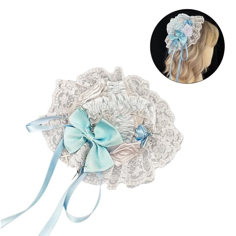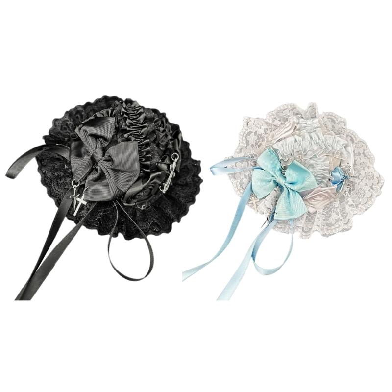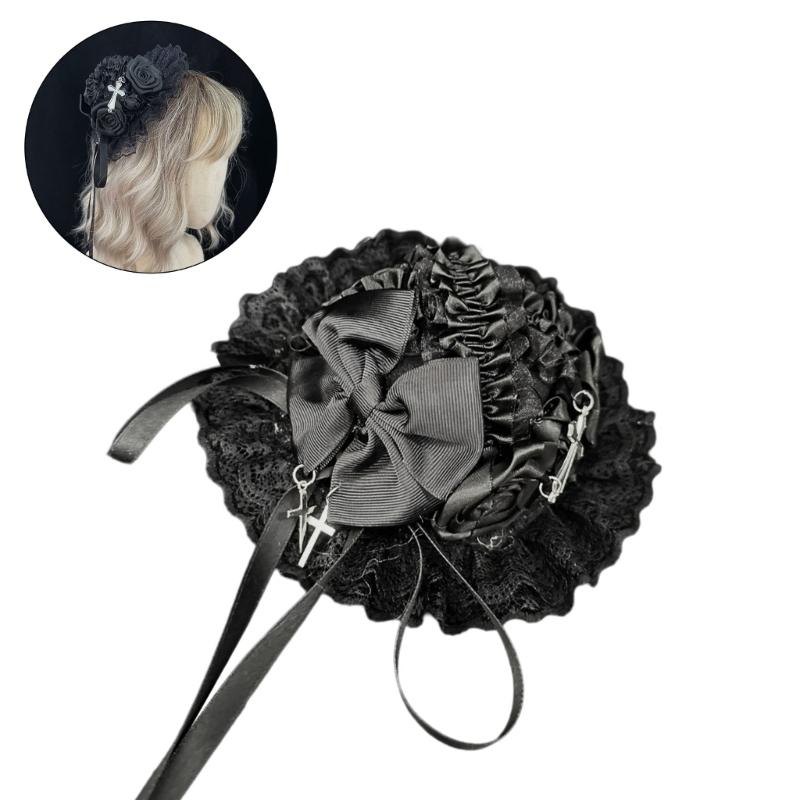 Маленькая шляпка, лента, кружево, заколки для волос для женщин, аксессуары для косплея, элегантные кресты, роза, косплей