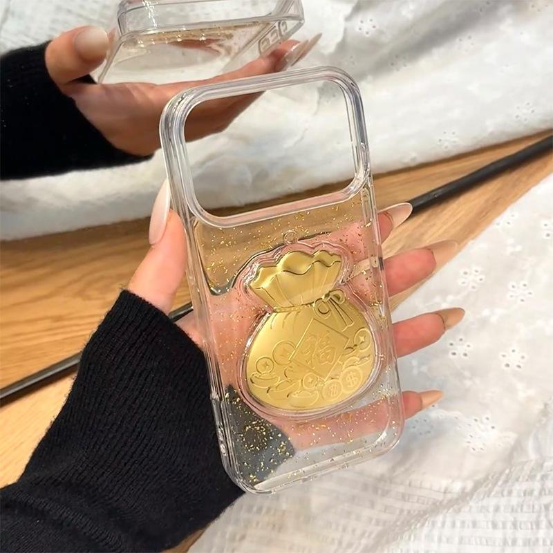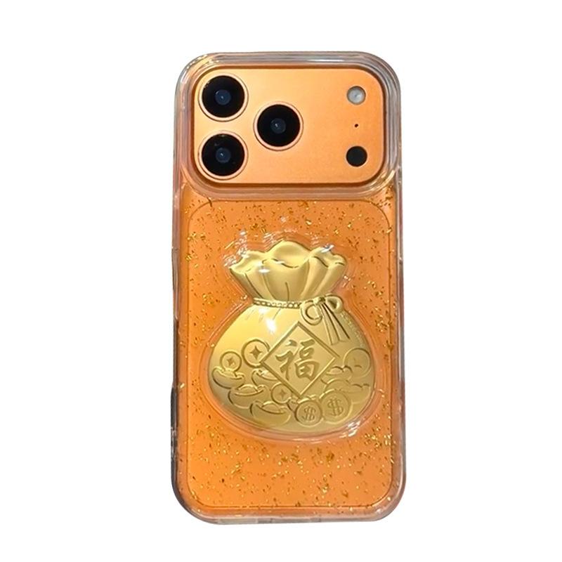 Gold Foil Three-dimensional Lucky Bag Mobile Phone Case New Year Model for IPhone16promax Transparent National Trend for Apple 17Air