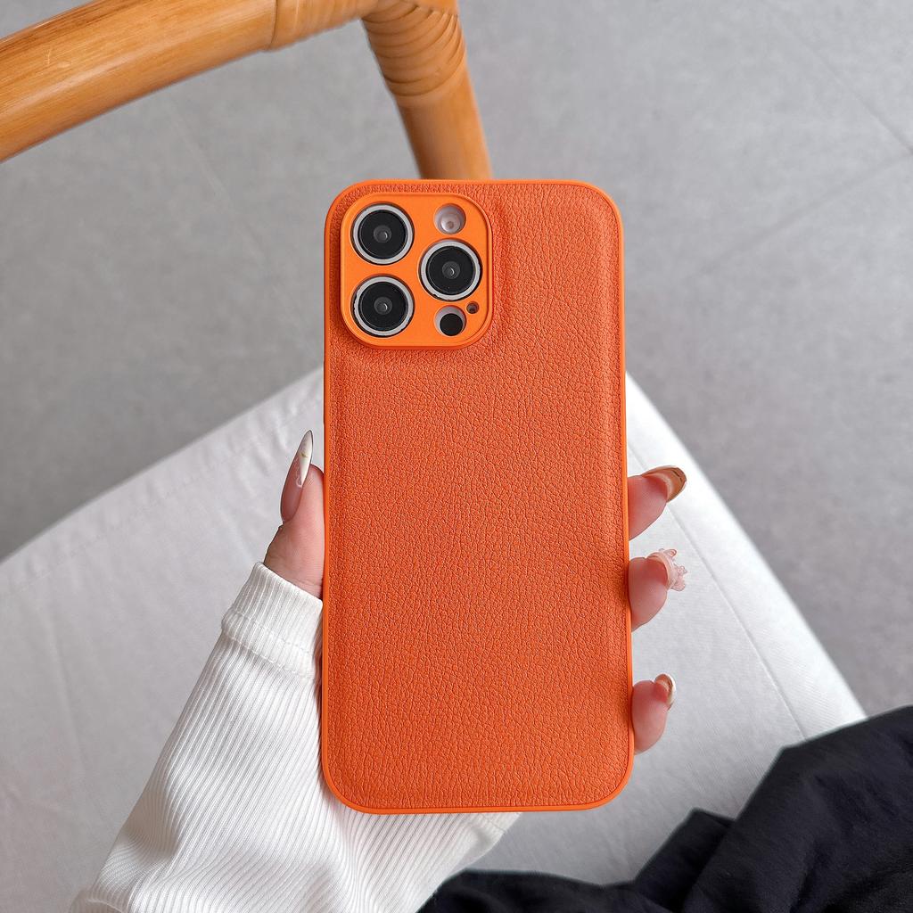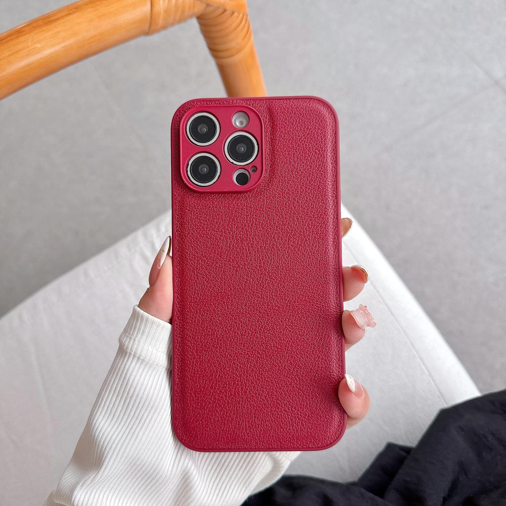 Black Lychee Pattern for Apple 16 Mobile Phone Case for IPhone 15 Personality 12 Promax Autumn and Winter Leather 13 Anti-fall